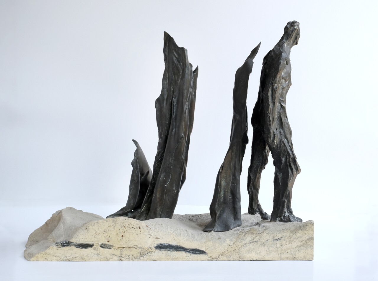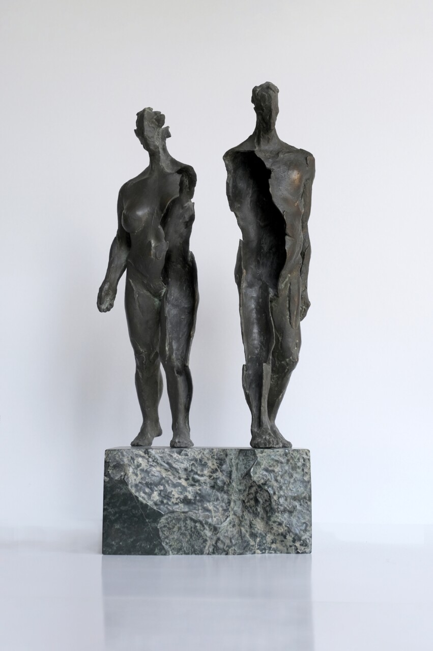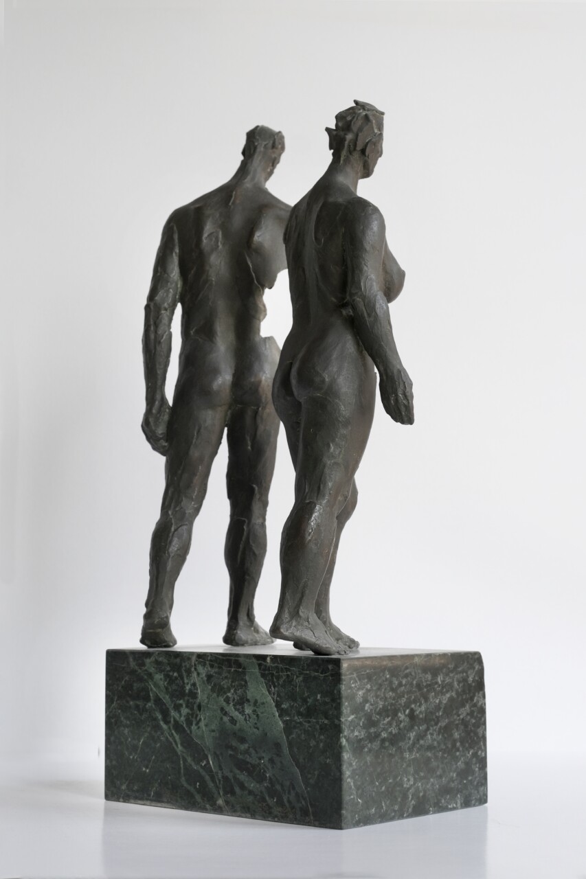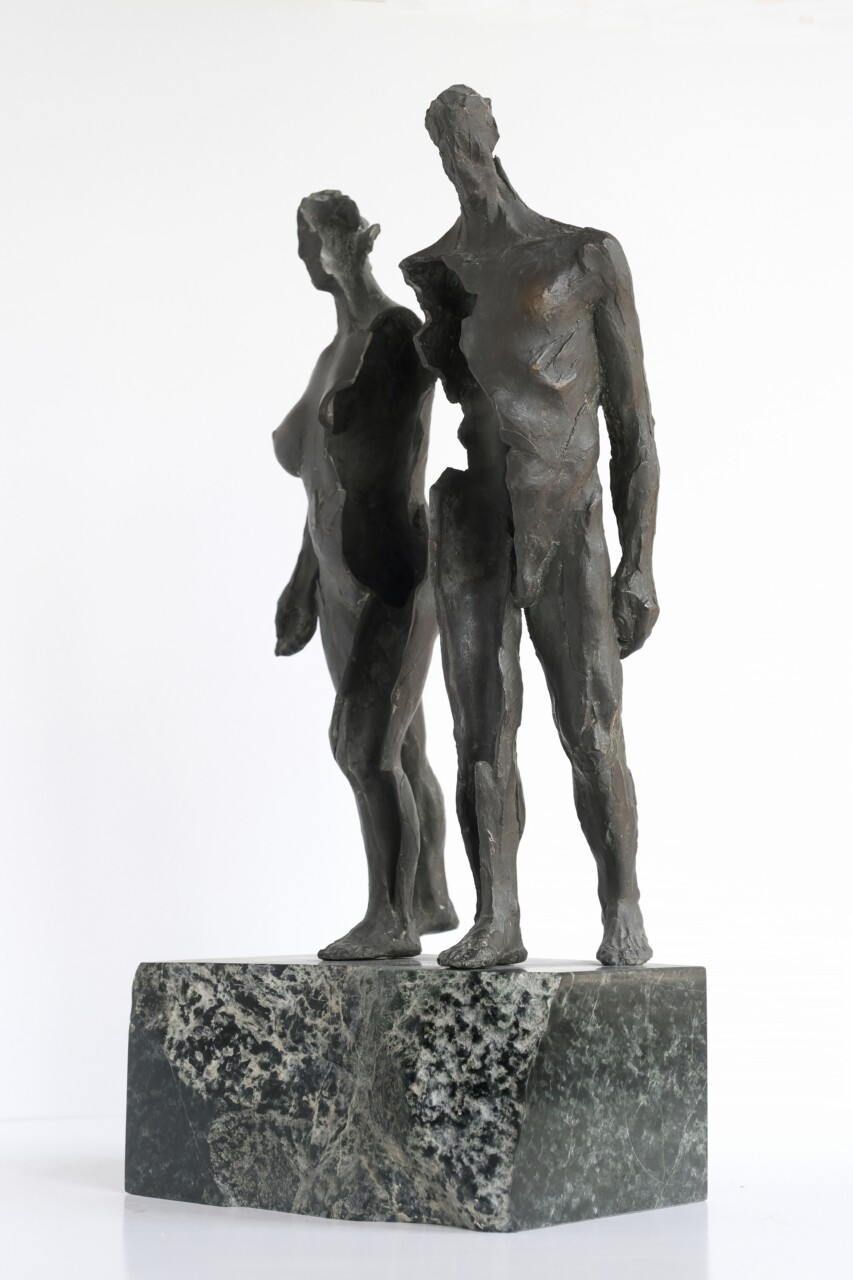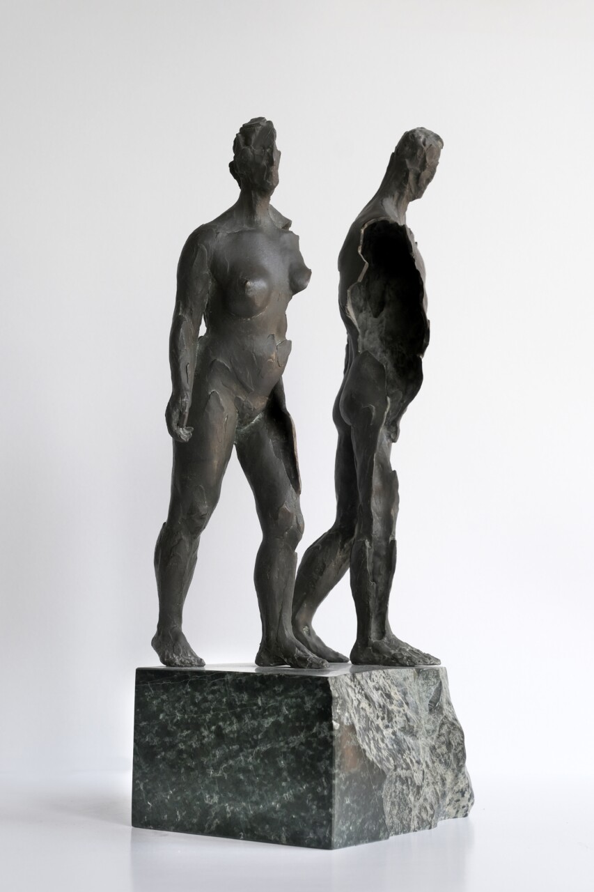 Wygnanie z Raju, brąz, kamień (serpentynit), 46 x 20 cm,