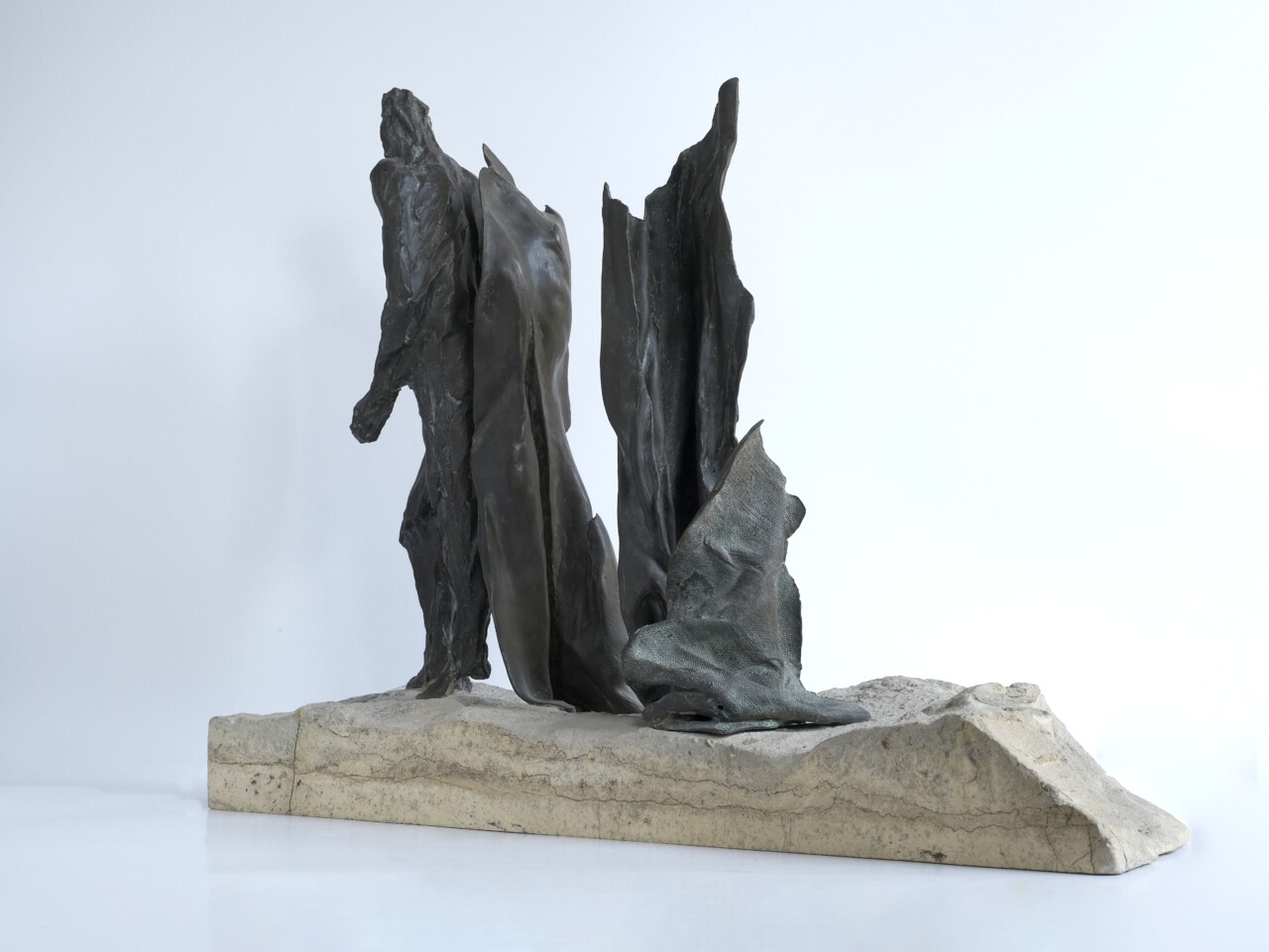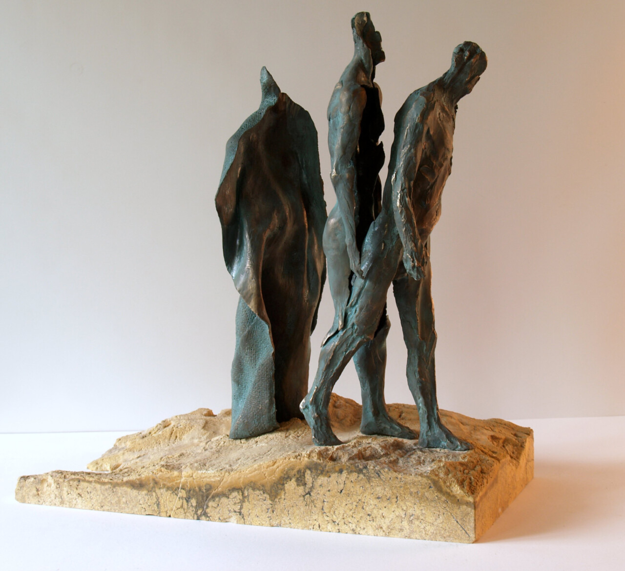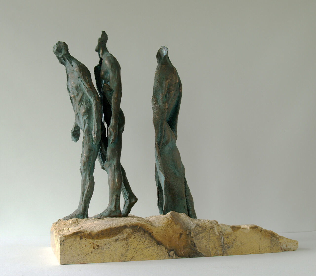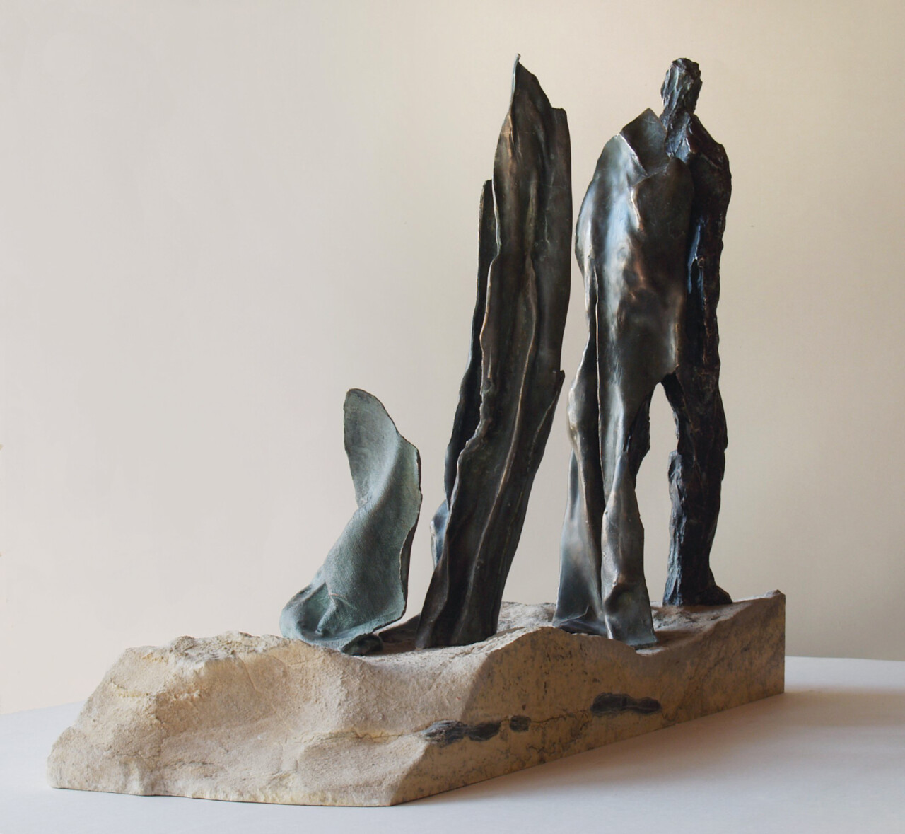 Wygnanie z Raju, brąz, kamień (serpentynit), 46 x 20 cm,