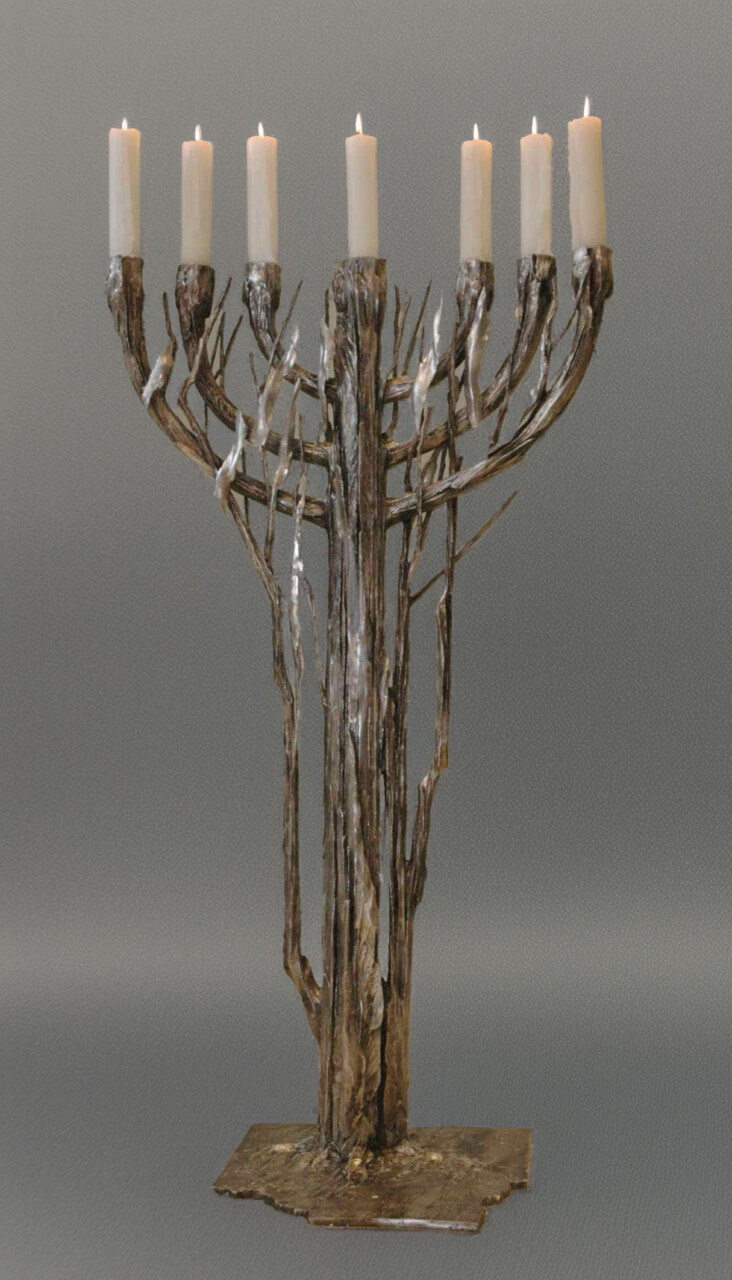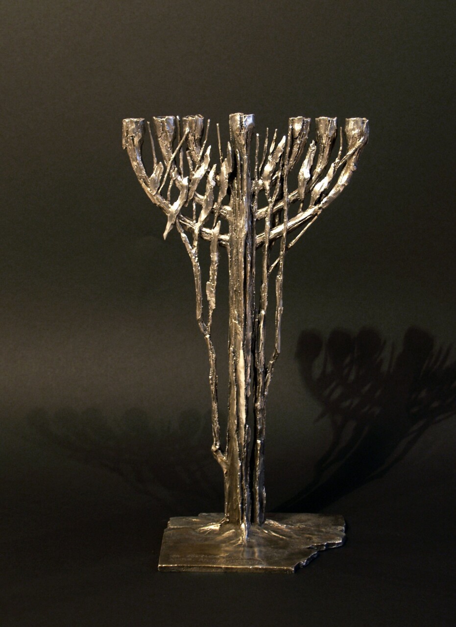 Menora dialogu (miniatura), brąz srebrzony, 30 x 18 cm., 2006 r.