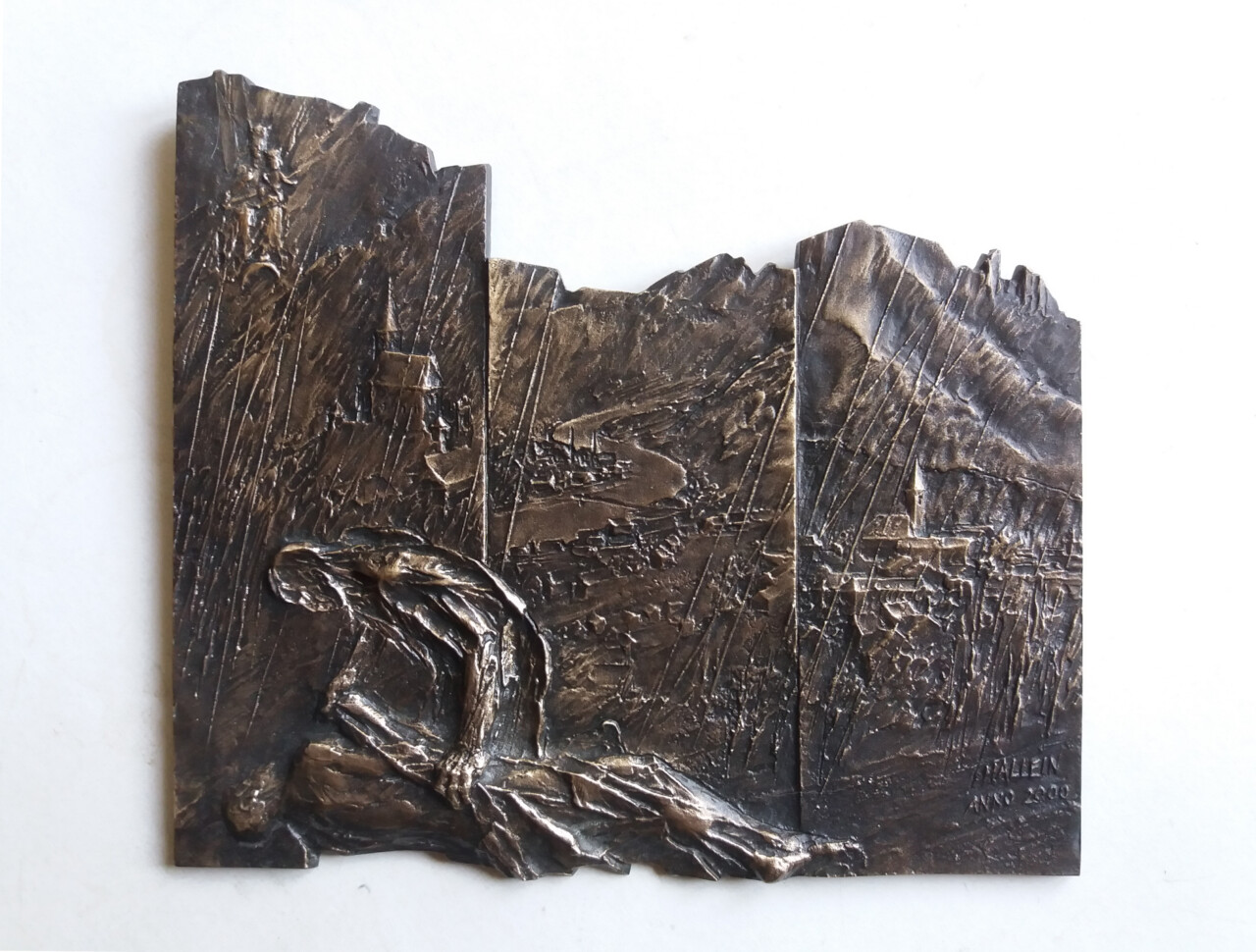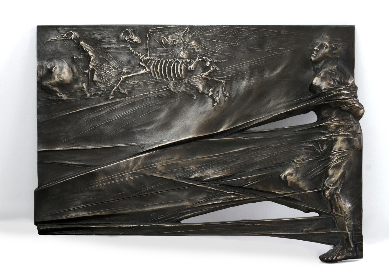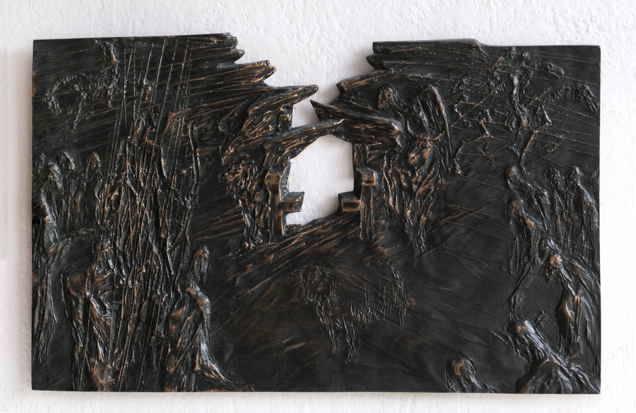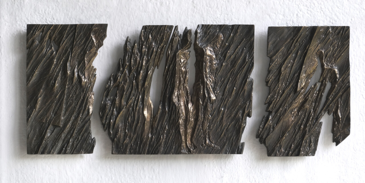 Tryptyk o płomieniu, świetle i przemianie, brąz, 14 x 24 cm., 1992 r.