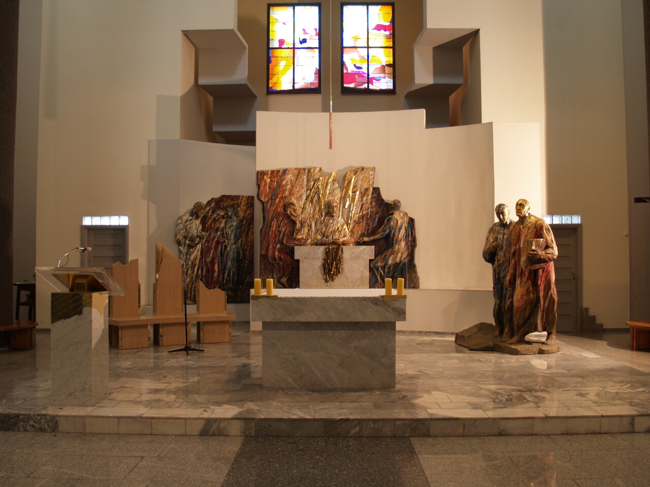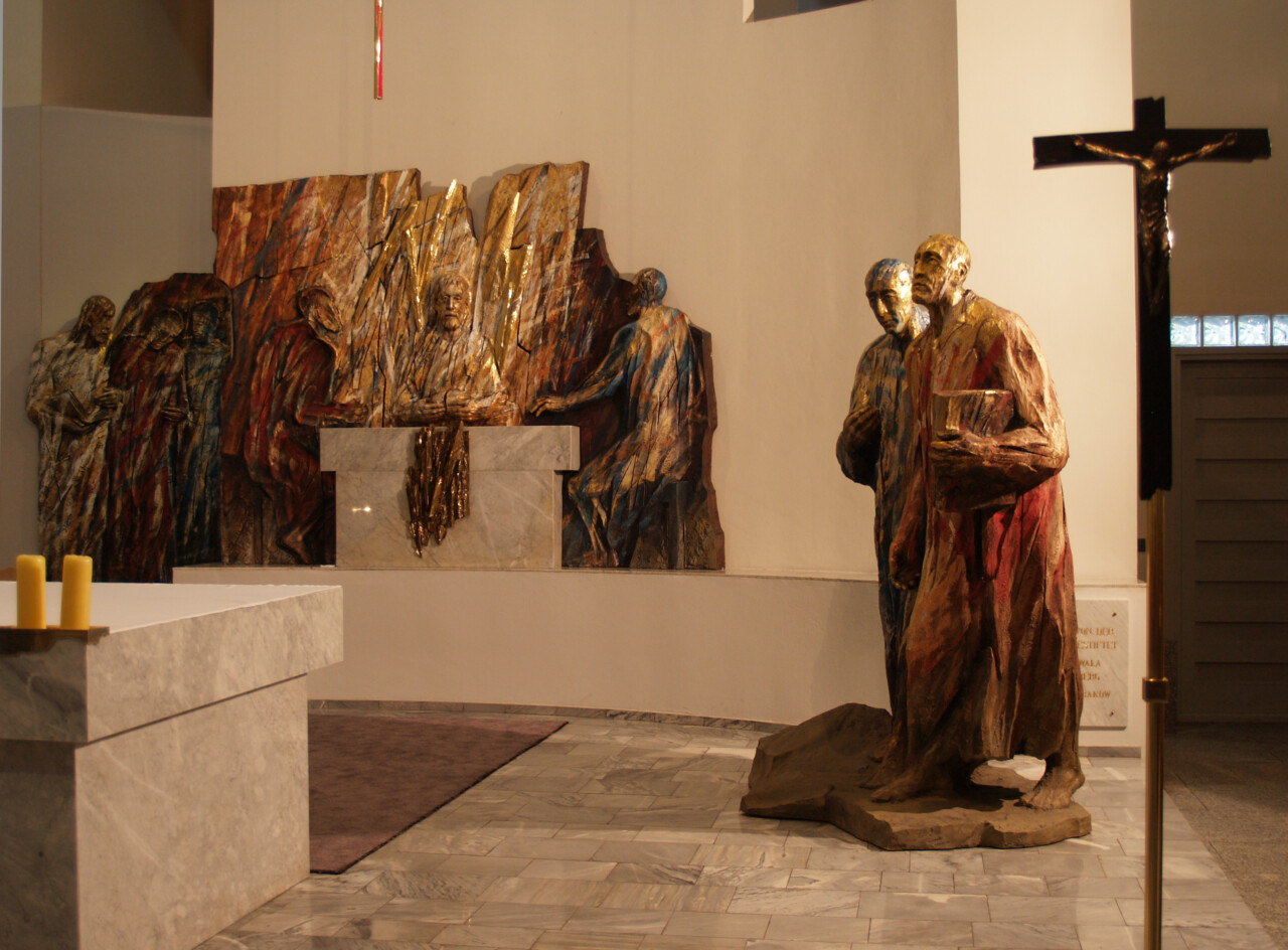 Tryptyk Emaus, aranżacja architektoniczna, rzeźbiarsko–malarska (drewno lipowe, akryl, złocenia) z Adamem Brinckenem – malarstwo, 2005–2006 r.